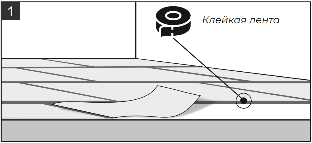 7.1. Подложка укладывается встык и закрепляется при помощи клейкой ленты по всей длине стыка (рис. 1).