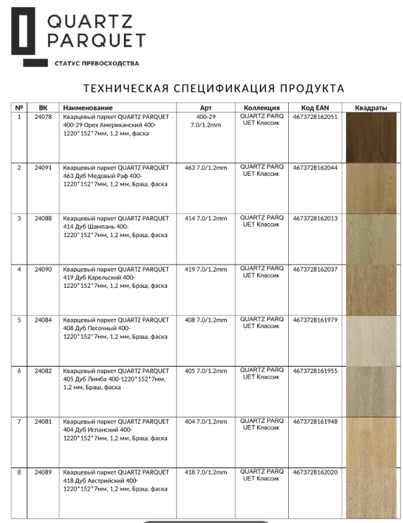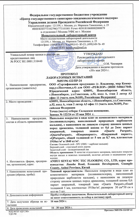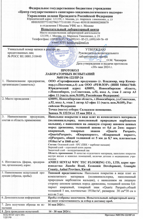Протокол испытаний Quartz Parquet
